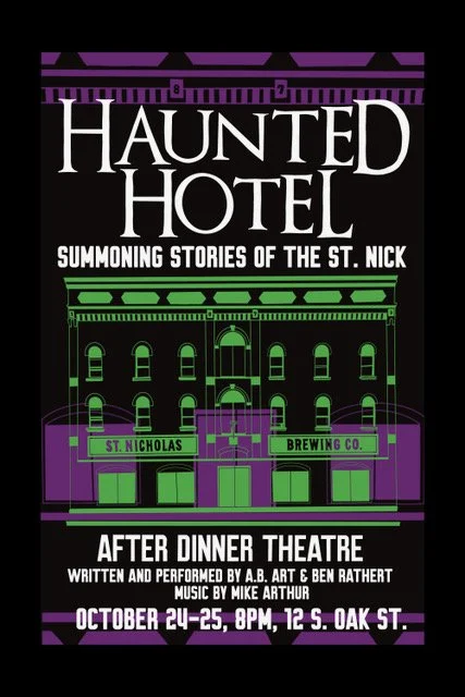 Join us this Halloween season as we summon the ghosts of the St. Nicholas Hotel in a haunted after dinner theater experience hosted by ARThaus Production. This show features ghost stories about local legends, music, shadowy figures, and even a murder most foul.